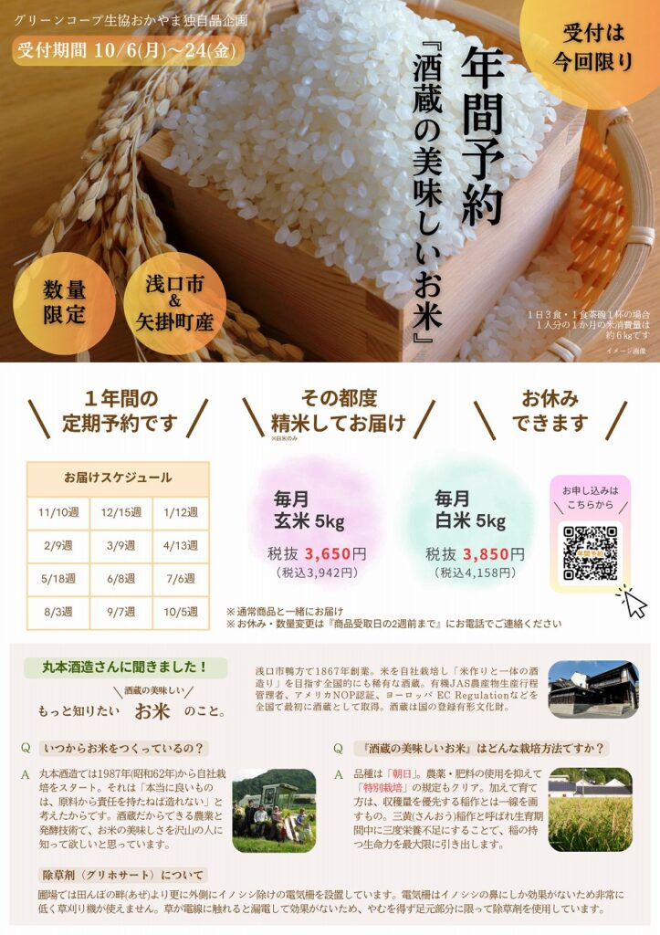 【受付期間10/6-24】年間予約『酒蔵の美味しいお米』