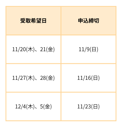 *受取希望日ごとの申込締切をご確認のうえお申し込みください