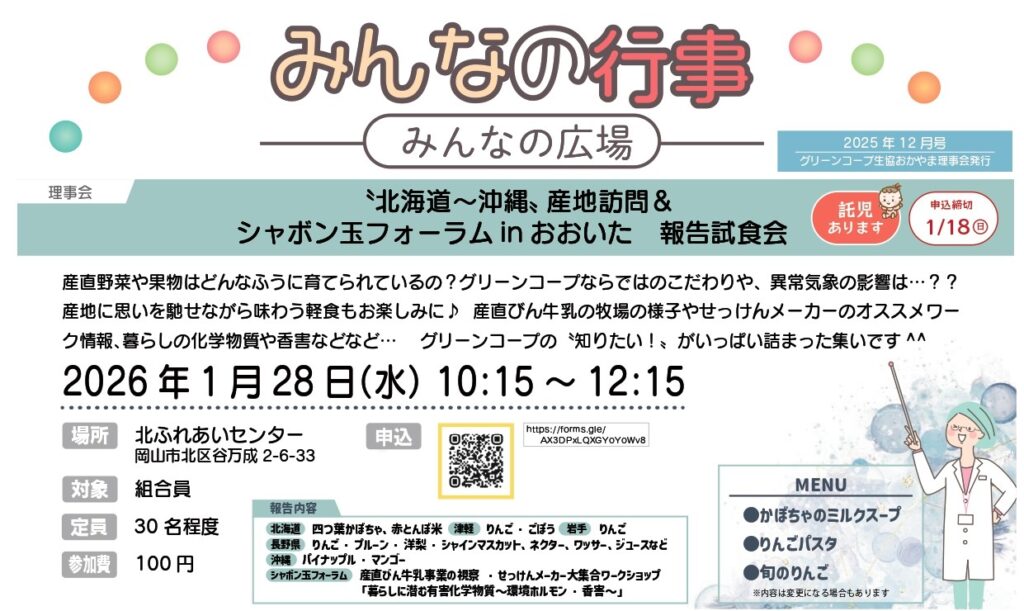 グリーンコープの産直の魅力や、せっけん&くらしの安心・安全がいっぱい詰まった企画です。