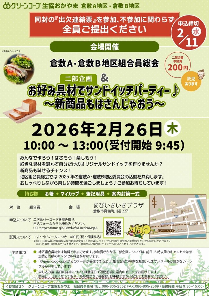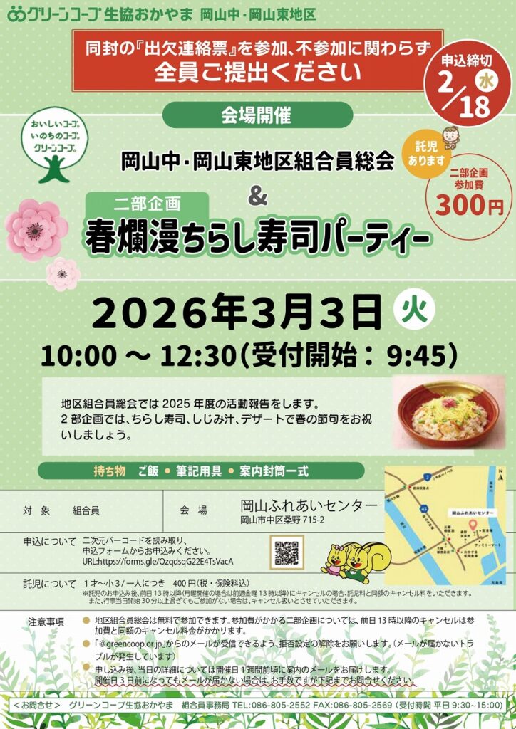 地区組合員総会 ★所属地区の組合員総会へご参加ください★