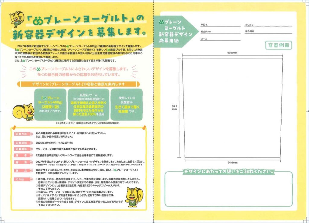 あなたの描いた絵が、グリーンコープのこだわりヨーグルトのパッケージになるチャンスです!