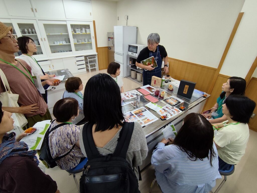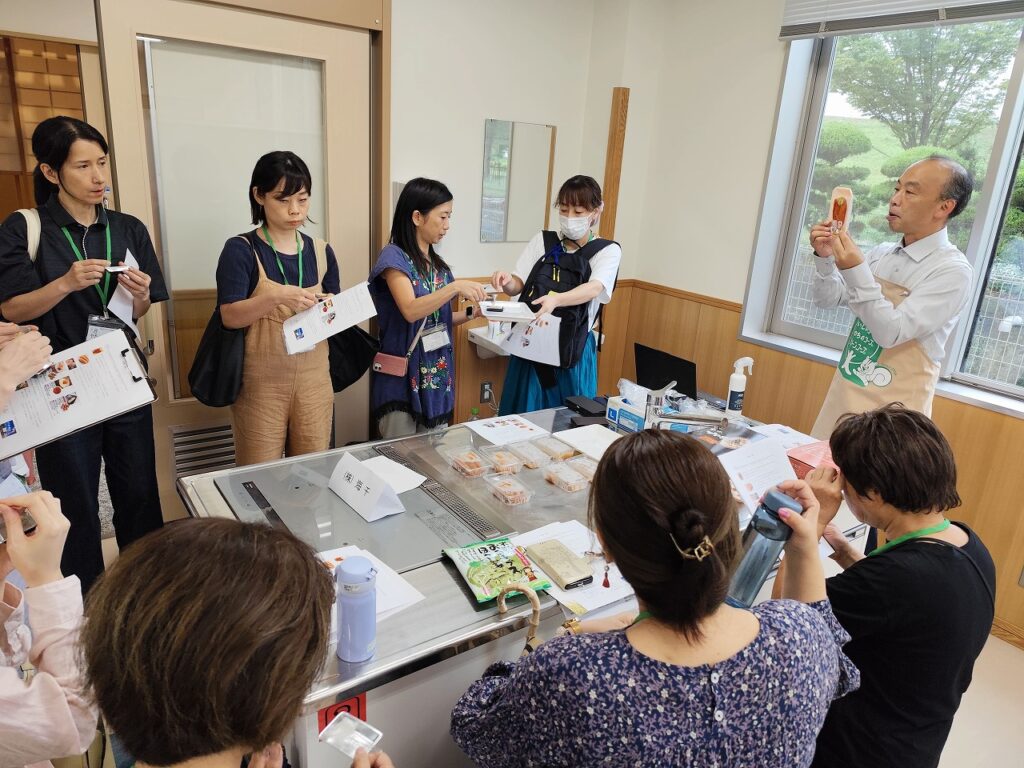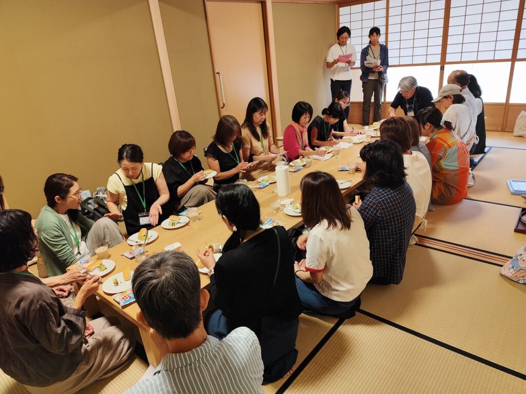 最後に、パスチャライズ殺菌でつくられたカフェミルクやクリスマス用のピスタチオケーキ、とんぼのめぐみのおせんべい、にぎれるスティックパンを試食しながら、参加者同士の交流も行いました。