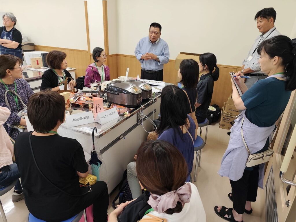 9月25日(木)まびいきいきプラザにおいて、雨天にもかかわらず40名の参加があり、遠路はるばる来てくださったメーカーさんは9社!参加者は4つのグループに分かれて、8ブース9社を順に回りました。