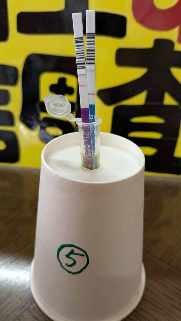 飼料工場や製油工場が立地する玉島エリア・水島エリアで調査しました。玉島エリアでセイヨウカラシナ1検体、水島エリアで更に種類の異なるセイヨウカラシナ2検体及び、セイヨウナタネ2検体を検査した結果、写真の1検体にラウンドアップ耐性陽性の反応を確認しました。